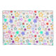 multi-colored design blends solid and outlined star shapes in a playful, chaotic harmony of red, purple, blue, gold, and teal on a White background