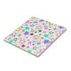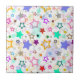 multi-colored design blends solid and outlined star shapes in a playful, chaotic harmony of red, purple, blue, gold, and teal on a White background