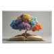 A majestic tree springs from the open pages of an antique book, its trunk rising into a breathtaking canopy of fluffy, jewel-toned clouds in sapphire, amethyst, magenta, coral, golden yellow, mint teal, and blush pink. Sparkling particles float downward like enchanted dust, blending the magic of storytelling with vivid imagination and boundless creativity. Perfect for reading nooks, kids’ rooms, home offices, libraries, nurseries, creative studios, or as inspiring gifts for book lovers, teachers, writers, dreamers, parents, or anyone who believes stories grow worlds.