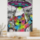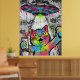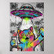 Colorful Street Art Cat with UFO Graffiti Poster