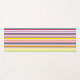 Yoga mat with vertical red, blue, green, yellow, white, brown lines.