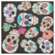 Colorful Sugar Skulls Pattern on Black Fabric