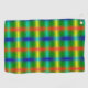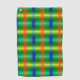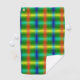 Colorful towel featuring a vibrant plaid pattern of blue, red, green, and yellow stripes, creating a lively and energetic design.