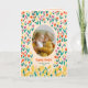 Celebrate Easter with a joyful and personal touch using this colorful spring floral photo greeting. The design features a cheerful pattern of bright tulips and spring flowers surrounding a central oval photo frame, creating the perfect space to showcase your favorite family picture. The lively floral pattern and warm spring colors bring a fresh seasonal feel that beautifully captures the happiness of Easter.
