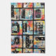 Colorful urban graffiti patchwork pattern kitchen towel featuring bold abstract blocks, expressive brush strokes, scribbles, stars, and mixed-media textures in bright blue, yellow, pink, orange, and black. Energetic and edgy with a modern street art aesthetic, this seamless design is ideal for graffiti art lovers, maximalist style fans, creative teens, and contemporary art enthusiasts.