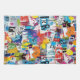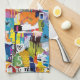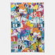 Colorful urban graffiti patchwork pattern kitchen towel featuring bold abstract blocks, expressive brush strokes, scribbles, stars, and mixed-media textures in bright blue, yellow, pink, orange, and black. Energetic and edgy with a modern street art aesthetic, this seamless design is ideal for graffiti art lovers, maximalist style fans, creative teens, and contemporary art enthusiasts.