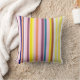 Yellow, pink, purple, blue, green, white , vertical, summer mood stripes color cushion.
