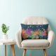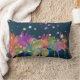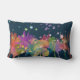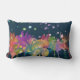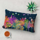 Colorful Watercolor Flowers on Dark Blue Lumbar Cushion