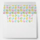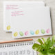 Destei's watercolor Easter egg pattern in light pink, blue, yellow and green. The pattern is placed on the inside, while the outside features a row of colorful eggs and a personalizable text area. The default text color is pink, but it can be changed to any color. This adds a cute detail to any Easter or springtime mailings.