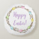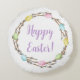 Colorful Watercolor Willow Wreath Happy Easter Round Cushion