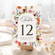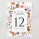 Guide your guests to their seats with this Colorful Watercolor Wildflower Wedding Table Number, featuring an elegant arch-shaped floral frame filled with wildflowers in shades of pink, orange, burgundy, purple, red, and yellow accented with soft greenery. “Table” is displayed at the top in graceful calligraphy lettering, with the table number, couple’s names, and wedding date shown below in a clean, refined layout. The larger 5"x7" size offers excellent visibility for reception tables and is available for professional printing or as an instant download for convenient at-home printing. Perfect for garden weddings, outdoor receptions, and floral wedding themes, this botanical table number coordinates beautifully with matching wildflower wedding stationery. Edit each table number individually and add them to your cart to ensure a smooth ordering process.