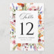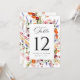 Add a beautiful botanical accent to your reception with this Colorful Watercolor Wildflower wedding table number card, featuring a vibrant floral frame of wildflowers in shades of pink, orange, burgundy, purple, red, and yellow accented with soft greenery. “Table” is displayed at the top in elegant calligraphy script, with the table number, couple’s names, and wedding date shown below in a clean, refined layout. The surrounding wildflower frame creates a romantic garden-inspired look that complements outdoor receptions, estate venues, and floral wedding themes. The 5"x7" size offers excellent visibility on reception tables and is available for professional printing or as an instant download for convenient at-home printing. Edit each table number individually and add them to your cart to ensure a smooth ordering process.
