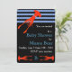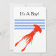 Join us for a baby shower to celebrate that new baby boy! What better animal to announce it than a colossal squid? With the bright orange squid and pastel blue chevrons on a black background, this invitation makes a bold statement.