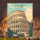 Celebrate one of the world’s most iconic landmarks with this vintage postcard illustration of the Colosseum in Rome, Italy. Designed in a timeless retro style, this artwork spotlights the grandeur of ancient Roman architecture with bold colours, classic texture, and a warm nostalgic feel. Perfect for collectors of historical travel art or Italian décor lovers.