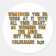 Whatever you do, work at it with all your heart, as working for the Lord, not for men. Colossians 3:23