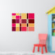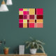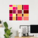 An attractive hard edge abstract composition in reds, pinks, yellows, browns and greys.