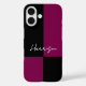 Enjoy sleek geometric style and custom elegance with this bold colour block phone case. The modern phone cover features striking black and burgundy blocks, paired with your name in white script text for an individual touch. Ideal as a personalised gift or an upgrade to your everyday tech, this case mixes practicality with a classic minimalist aesthetic.