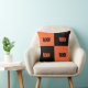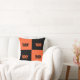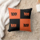 Halloween throw pillow shown in orange/black colour blocks with Boo! text. Customise this item or buy as is.