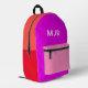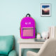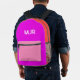 .: This backpack has a fun design featuring bold, primary colours along with black and white. It also features a small little patch of floral beneath the right pocket's mesh. The Initials are fully customisable. You may even change the font size and colour.