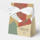 Abstract colour blocking in a soft, warm colour palette provides a striking background for the pieces in this contemporary wedding suite. The wedding favour box shown here is perfect for the bride who is planning a modern summer or fall wedding. Add a personal thank you message, your initials and wedding date using the provided template. Search ID740 to see other colour options and additional products with this design.