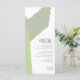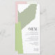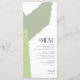 Abstract colour blocking in a cheerful colour palette of rose pink and spring green provides a striking background for the pieces in this contemporary wedding suite. The wedding 'Menu' card shown here is an eye-catching addition to your table decor. Add your menu selections, initials and wedding date using the provided template. Search ID740 to see other colour options and additional products with this design.