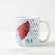 Abstract colour blocking in a cheerful winter colour palette of blues and brick red provides a striking background for the pieces in this contemporary wedding suite. The mug for the groom shown here has the optional text 'MR' in a bold modern font style. Easily adapt for everyday use by adding a name or monogram to replace the supplies text image. Search ID740 to see other colour options and additional products with this design.