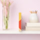 Abstract colour blocking in a bold colour palette of hot pink, tangerine orange and golden yellow provides a striking background for the pieces in this contemporary wedding suite. The wedding guest book shown here is perfect for the bride who is planning a modern summer wedding. Easily Add the bride and groom's names and wedding date using the provided template. Search ID740 to see other colour options and additional products with this design.