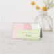 Abstract colour blocking in a cheerful colour palette of rose pink and spring green provides a striking background for the pieces in this contemporary wedding suite. The wedding table place card shown here is an eye-catching addition to your wedding table decor. Easily your thank you message, names and wedding date using the provided template. Search ID740 to see other colour options and additional products with this design.