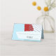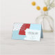 Abstract colour blocking in a cheerful winter colour palette of blues and brick red provides a striking background for the pieces in this contemporary wedding suite. The wedding table place card shown here is an eye-catching addition to your wedding table decor. Easily your thank you message, names and wedding date using the provided template. Search ID740 to see other colour options and additional products with this design.