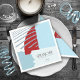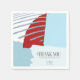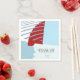 Abstract colour blocking in a cheerful winter colour palette of blues and brick red provides a striking background for the pieces in this contemporary wedding suite. The wedding paper napkin shown here adds the perfect splash of colour for your modern winter wedding. Add a personal thank you message, your initials and wedding date using the provided template. Search ID740 to see other colour options and additional products with this design.