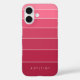 Chic, simple monochromatic colour blocks or stripes in shades of pink and personalised with a name, monogram or your custom text in your choice of font styles. OPTIONS: The sample is shown in the iPhone 16 model and Barely There case style--other phone models and case style are shown on the ordering page. ASSISTANCE: For help with design modification or personalisation, colour change, resizing, transferring the design to another product or if you would like coordinating items, contact the designer BEFORE ORDERING via the Zazzle Chat MESSAGE tab below or email makeitaboutyoustore@gmail.com.