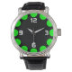 A nice simple minimal watch face design with solid colour crescents around the edge with the numbers 12, 3, 6, and 9 making it easy to read. The design is also available with different colour crescents and the background colour of the face can also be customised providing lots of different colour possibilities. The design can also be further customised.
