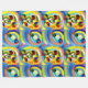 Stylish cosy blue & yellow abstract painting with additional areas of red, green, orange.