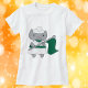 Are you looking for a gift for a person in colour guard? This shirt features a cute grey kitty cat wearing a green and white colour guard uniform while holding a green flag.