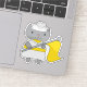 Are you looking for a fun gift for a colour guard or flag team member?  This sticker features a cute grey cat wearing a yellow and white colour guard uniform while holding a yellow flag.