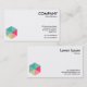 A clear stylish and attractive business card template with a segmented hexagon motif decoration in a palette of five harmonious colours. Main company details on the front, with name and personal contact on the back with a repeat of the symbol motif. Suitable for a variety of businesses. This card is fully customisable.