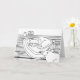 Colour Me Birthday greeting card with a cute image of a sleeping cat and a big mouse with party hat sneaking up from the side. Cat is sleeping in its bed which is on a wooden floor. In the background a mouse house door can be seen and a sign which reads "Bless this Mouse" hanging next to it. Black and white line image you can colour or send to someone to colour for their birthday. Great for kids, teens, or adults! Happy Birthday greeting card. Art, image, and verse copyright © Shoaff Ballanger Studios.