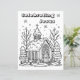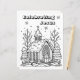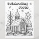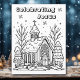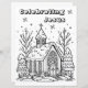 Colouring Page with a Christmas theme. Pretty church with stained glass and a snowy background. Text says, "Celebrating Jesus." Cute for kids, teens or adults.