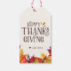Living up your Thanksgiving dinner gathering with this bright and colourful fall festive set of favour gift tags. It features the word 'Thanksgiving' in a curly style font towards the top. Underneath this is a spot for your unique year or monogram initials. Underneath your information is an array of colourful fall-themed watercolor leaves to set the tone of autumn. All elements of this item are unlocked and customisable so enjoy being creative.