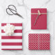 This magenta and white gift wrap features the 2023 colour of the year: Viva Magenta. Three patterns come in this trendy colour combination: solid, stripes and polka dots.