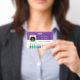 A purple and white horizontal photo ID badge with a doodle illustration of colour pencils at the bottom . Personalise it with the employee's 2x2 inches portrait photo , her or his name and title and the school name and address . It is an ideal ID for art teacher , art docent or any other elementary school staff .