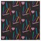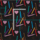 A fun fabric for teachers or artists with the pattern of scrambled colour pencils , pink hearts doodle and yellow sun outlines . All this on a black , faux chalkboard background . Perfect to create classroom pillows , curtains , and more .