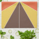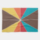 A design with 12 x 30 degree segments each divided with a white line and in a palette of 5 colours with adjoining segments at the top and bottom using the same colour creating symmetry.