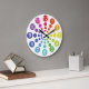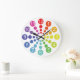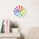 Fun and colourful vibrant colour spectrum circle radial pattern wall clock featuring all of the colours of the rainbow. A perfect decor item for a child's room or a nursery.