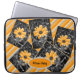 Spring Flash African Daises are beautiful flowers. This 15" neoprene laptop sleeve is adorned with an multiple orange, ivory, grey and black framed close up photographs leaving the colour in the open orange daisy blossom and closed bud to stand out over the desaturated photo. An orange, ivory and grey diagonal striped design fills the background. The framed orange oval sets off your text. Fill in the template field with a name or initials or click Customise it! if you'd like to select a different font style, size and colour. In the upper right column Choose your options you can select the 10 or 13 inch sizes.