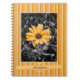 Spring Flash African Daises are beautiful flowers. This spiral bound journal is adorned with a desaturated close up photograph of the daisy leaving the open orange blossom and bud to stand out over an orange, ivory and grey vertical striped background. The orange ribbon and oval set off your text. Fill in the template field with your words or initials, remove all text, and any of the layers to personalise the journal to your liking. You can click Customise it! if you'd like to select a different font style, size and colour.