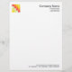 A business letterhead with an attractive motif or decorative logo made up of 16 squares in a pallet of 5 colours.