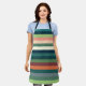 Colour Stripes Pattern Apron designed by Nisha Prabhu. The Colour Stripes Pattern Apron is a stylish and practical kitchen accessory that combines vibrant design with functional elegance. Each apron features a captivating array of colours in a dynamic striped pattern, creating a visually appealing and modern look that adds a pop of personality to your cooking experience. The bold and colourful stripes on the apron bring a touch of fun and flair to your time spent in the kitchen. The eye-catching design is sure to brighten up your cooking routine and inspire creativity in the culinary arts. More than just a typical apron, this artful creation is a fashion-forward statement piece that showcases your unique sense of style while keeping you clean and tidy during meal preparation. The catchy art description of the Colour Stripes Pattern Apron highlights its blend of creativity and practicality, making it a must-have accessory for any home chef looking to cook in style.