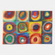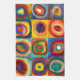 Wassily Kandinsky’s Colour Study: Squares with Concentric Circles is a vibrant exploration of colour and form, featuring a grid of squares filled with concentric circles in an array of bold and contrasting hues. Each square contains unique colour combinations, creating a visual rhythm and harmony that captures Kandinsky’s fascination with the emotional power of colour. This study exemplifies his abstract style, emphasizing the impact of colour arrangement and shape over representational imagery, and invites viewers to experience the interplay of colours on a purely sensory level.