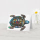 The artwork on thie turtle shell evokes an inclusiveness and colour that brings joy.